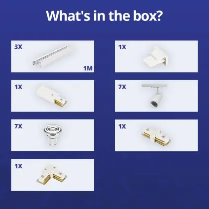 Bright Choice Complete Set 1-Fase Rail L 1 x 2 Meter Wit | incl. 7x Spot + GU10 2700K 3W Dimbaar + Eindkap, Voedingsconnector en L -Verbindingsstuk