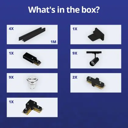 Bright Choice Complete Set 1-Fase Rail L 2 x 2 Meter Zwart | incl. 9x Spot + GU10 2700K 3W Dimbaar + Eindkap, Voedingsconnector en L -Verbindingsstuk