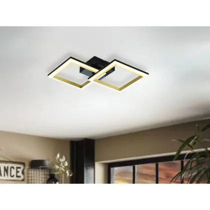 Eglo Plafondlamp Calliera Staal Zwart, Messing 18.4W 2500lm - 830 Warm Wit | Dimbaar