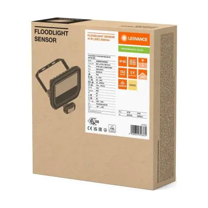 Ledvance LED Breedstraler Aluminium Zwart 41W 5500lm 100D - 830 Warm Wit | IP65 - Bewegings- En Lichtsensor - Symmetrisch