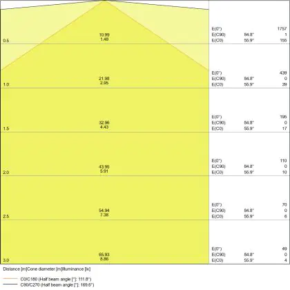 De lichtopbrengst (Lumen), geeft weer hoe krachtig het uitgestraalde licht is. Dit is belangrijk om te weten om de juiste sfeer te creëren. 0 tot 400 Lumen is bij uitstek geschikt voor accent- of sfeerverlichting. Een hoger aantal Lumen is, afhankelijk van de grootte van de ruimte, beter geschikt als ondersteunende- of basisverlichting. Heb je plafonds hoger dan 4 meter, dan is een lichtopbrengst van minimaal 8000lm aan te raden indien heldere verliching gewenst is (vb. in werkomgevingen).