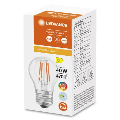Ledvance Superior Classic LED E27 Kogel Filament Helder 3.4W 470lm - 940 Koel Wit | Dimbaar - Beste Kleurweergave