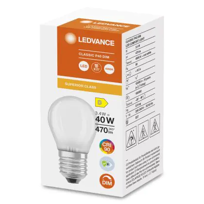 Ledvance Superior Classic LED E27 Kogel Mat 3.4W 470lm - 940 Koel Wit | Dimbaar - Beste Kleurweergave
